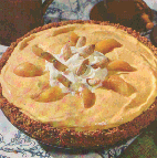 Laat de gelatine in het hete water oplossen, laat het wat afkoelen en roer het door het slagroom mengsel. Schap alles, las het begint op te stijven in het bakje van de gember kruimels. Laat de vulling volkomen afkoelen alvorens deze met de amandelen, de schijfjes abrikoos en de slagroom te garneren.