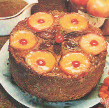 Spreid het beslag gelijkmatig over de vruchten. Maak het oppervlak iets hol en bak de taart gaar in een warme oven van 200 graden in ongeveer 1 uur. Controleer aan het einde van de baktijd met een breinaald, of deze droog uit het baksel komt. Leg de eerste 20 minuten papier of folie over de vorm tegen het te snel rijzen. Keer het baksel om met en verwijder de springvorm. De vruchten moeten nu bovenop komen te liggen.