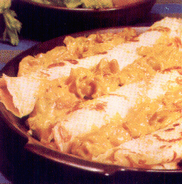 Zeef de bloem met het zout. Klop het ei en de melk er goed door. Verhit de olie in de koekenpan en bak 8 goudgele flensjes. Gebruik voor elk flensje niet meer olie dan nodig is omde bodem te bedekken. Deze moet gloeiend heet zijn voor het beslag erin gaat. Roer de room, geraspte kaas en gesmolten boter in een pannetje door elkaar. Voeg de bleekselderie toe en breng het goed op smaak met zout. Kook het mengsel niet meer anders wordt de kaas taai. Vul de flensjes met dit mengsel en rol ze stevig op.