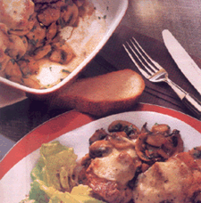 Verwijder zo nodig de vliezen, de zenen en het vet van de varkenshaas. Verdeel het in gelijke plakjes en druk ze plat met de hand. Verhit de helft van de olie in een grote koekenpan en braad de varkenshaas ca. 4 minuten aan. Keer ze daarbij een keer om, haal ze daarna uit de pan en strooi er wat zou en peper over. Verwarm de oven voor op 200 graden. Snipper de gepelde ui. Verhit 1 eetlepel olie en laat de ui op een laag vuur glazig fruiten. Maat de champignons schoon met en doekje of een borsteltje en snijd ze in plakjes. Laat deze kort met de ui mee fruiten. Pers er de gepelde knoflook bij. Laat zo lang bakken, tot vrijwel alle vocht is verdampt. Sla de schoon gespoelde peterselie droog, trek de blaadjes van de stelen en hak ze fijn. Schep de peterselie door het champignon mengsel en breng op smaak met zout en peper.