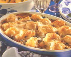Maak de bloemkool schoon, verdeel hem in roosjes en kook die in heet water met zout in ca. 8 minuten gaar. Neem ze met een schuimspaan uit de pan en spoel ze kort af onder koud water, om na garen te voorkomen. Zet het kookvocht in de pan even apart, dit heb je later weer nodig. Pel de sjalotjes en de knoflook en bak de sjalotjes glazig in de 2 eetlepels boter. Voeg aan het eind de knoflook toe en bak deze even kort mee (30 seconden). Bestrooi daarna de sjalotjes en de knoflook met bloem en bruin deze even heel kort mee in de pan. Giet het kookvocht bij de sjalotten en laat een paar minuten zachtjes meekoken. Voeg al roerende de melk toe. Laat deze saus op een laag vuur indikken en roer af en toe goed door. Breng de saus op smaak met zout, nootmuskaat en citroensap. Verwarm de oven voor op 200 graden (hete lucht 180 graden). Was de spinazie (of gebruik Bonduelle spinazie). Doe deze met het aanhangende vocht in een pan. Laat op middelhoog vuur met een deksel op de pan goed slinken. Voeg 2 eetlepels boter toe en breng op smaak met peper - zout en nootmuskaat.