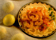 Meng de olie, knoflook, chilisaus of hot ketchup, citroenrasp, suiker en peper goed door elkaar. Roer dit mengsel voorzichtig door de garnalen.
