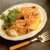 Serveren met schijfjes citroen, peterselie en een klein beetje mayonaise met basilicum.