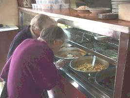 Meestal tref je in de keuken een lange tafel aan met allerlei potten en pannen