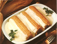 Was de maiskolven, kook ze gaar in zoveel water dat ze half onder staan. Voeg na 10 minuten koken wat zout toe en laat de mais in nog 10 -15 minuten gaar worden. Smelt ondertussen de boter, voeg de bloem toe en laat het mengsel al roerende warm worden. Giet de melk erbij en roer tot een glad gebonden saus ontstaat. Voeg daarna de koks room toe met een beetje nootmuskaat en zout en peper naar smaak.