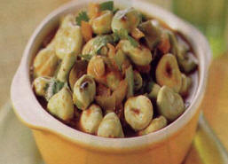 (Vervolgens bij de verse tuinbonen 2 dl water toevoegen en bonen afgedekt ca 4 minuten koken.)