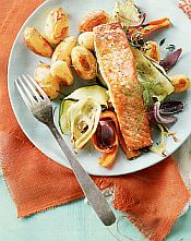 Geroosterde groenten en krieltjes met zalm