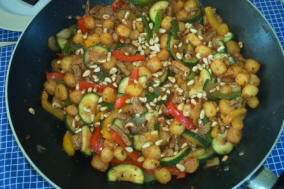 Warm het gerecht goed door en garneer daarna met pijnboompitten.