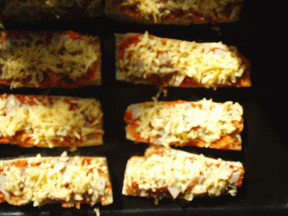 Baguette afbakken en in achten snijden. Besmeren met tomatensaus naar keuze. (zie voor recept bij pasta recepten). Stukjes ham verdelen over de 8 stukken baguette. Verdeel de geraspte Maasdammer en plaats 5 minuten in een voorverwarmde oven van 235C of totdat de kaas mooi goudbruin is.