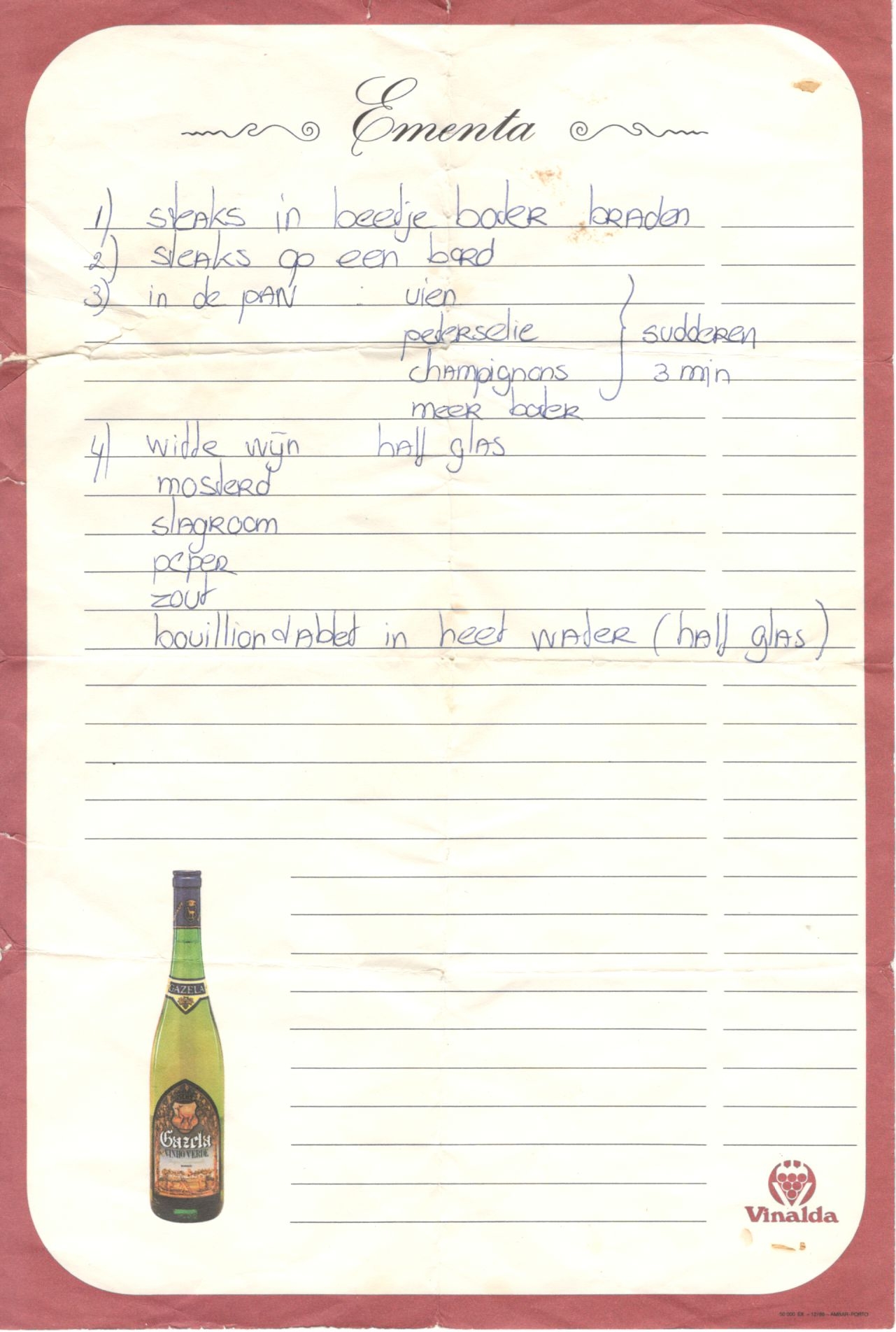 40 jaar geleden kreeg mijn partner het recept van Vitoria (de keukenchef)