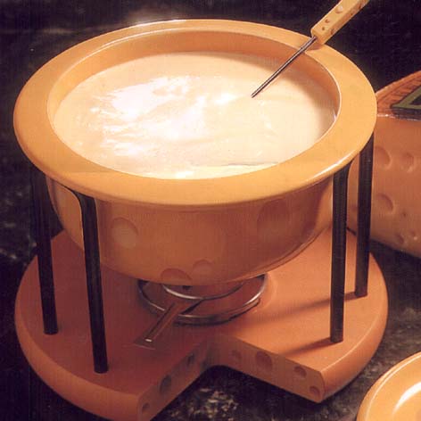 Voor een pittig accent aan de fondue kunt u ook een stukje Blauwschimmelkaas toevoegen.