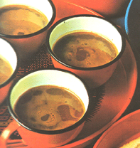 Roer in een pan op het vuur de cacaopoeder en de suiker door elkaar en voeg, steeds roerend de melk toe. Laat de melk koken draai het vuur laag en laat de chocolademelk die je nu hebt 8-10 minuten doorkoken. Neem de pan van het vuur, schenk de koffie zo warm mogelijk met suiker of suikerklontjes.