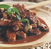 Haal het vlees uit de marinade. Roer de tomatenpuree door de achtergebleven marinade. Verhit 4 eetlepels olie in een koekenpan en bak het vlees (snel) steeds roeren gedurende 4 minuten. Doe de marinade bij het vlees en temper de hittebron. Voeg bij gebruik van zeer mager vlees eventueel een scheutje water toe. Leg een deksel op de pan. Laat het vlees heel langzaam, gedurende een minuut of 30, gaar sudderen. Eet bij dit gerecht bijvoorbeeld witte of gele rijst en zoetzure groenten (atjar tjampoer).