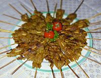 Het vlees aan dobbelsteentjes snijden. De sjalotjes en knoflook fijnsnijden en kneuzen, met de ketoembar, laos zout, djahe, asem en bruine suiker. De boter even smelten, van het vuur halen en de kruiden er met de ketjap door roeren. Het vlees hier nu in mengen en ongeveer een half uur laten staan. Aan stokjes rijgen en roosteren. Wel blijven keren op de barbecue.