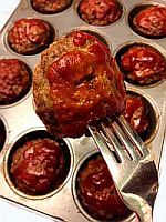 Verwarm de oven voor op 180 graden. Bestrijk/spray een muffin pan/schaal met boter of bakspray. Meng vervolgens het gehakt met het ei, ui, melk, en broodkruimels of beschuit en een eetlepel Worcestersaus en een beetje zout en peper. Vul vervolgens de muffin cups met het gehaktmengels. Doe een beetje ketchup op het gehakt en bak de cups/schaal ongeveer 35 minuten in de voorverwarmde oven.