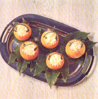 Snijd een kappje van elke sinaasappel (niet aan de kant van het kroontje) Snijd het vruchtvlees voorzichtig uit de sinaasappel en wrijf het door een zeef Meet de hoeveelheid sinaasappelsap die overblijft en doe het in een kom. Vul de gemeten hoeveelheid sap aan met water tot een totaal van 4 1/2 dl maar vermeng het water niet met het sap. (houd het dus apart) Maak het water lekker warm, los de gelatine erin op, laat het wat afkoelen en giet het bij het sinaasappelsap. Door het sinaasappelsap niet te verwarmen blijft namelijk de vitamine C behouden. !!!! Klop de room erdoor als het mengsel begint op te stijven en ga door met kloppen tot het mengsel schuimig is. Klop de eiwit heel stijf en schep het door het room-gelatine mengsel. Schep het mengsel in de sinaasappel bakjes en garneer ze met een munt blaadje op een schaal.