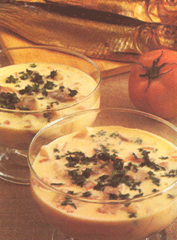 Was de filets, dep ze droog met keukenpapier en snijd de filets in stukjes van 3/4 centimeter. Besprenkel deze met het citroensap. Klop de yoghurt glad met de eierdooiers, een flinke mespunt of meer mosterd en naar smaak wat suiker, peper, zout en worcestersaus. Roer er vervolgens de haring door. Snijd de stukken tomaat wat kleiner en schep die door de stukjes haring. Verdeeld dit mengsel over vier coupes of schaaltjes, giet daar de saus in en garneer de cocktails met peterselie.