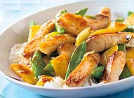 Maak de sugarsnaps schoon en kook ze in een pan met ruim kokend water en wat zout in 4-5 minuten beetgaar. Spoel ze in een zeef onder koud stromend water af. Schil de mango, snijd het vruchtvlees in plakken van de pit en snijd dit weer in stukken. Snijd de bosuitjes in stukken van 3-4 cm. Halveer de tilapia in de lengte en snijd ze vervolgens in repen van 3 cm. breed. Verhit de olie in een wok en roerbak de stukken tilapia ca. 3 minuten op hoog vuur. Schep de bosuitjes erdoor en bak ze 1 minuut mee. Schep dan de mango en sugarsnaps erdoor. Roer het citroensap, de gembersiroop en de oestersaus door elkaar en schep dit door de vis. Verwarm het gerecht nog 2 minuten zachtjes door.