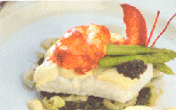 en op 1 van de hoekjes een schepje kaviaar. Druppel daarna de saus op en langs het gerecht.